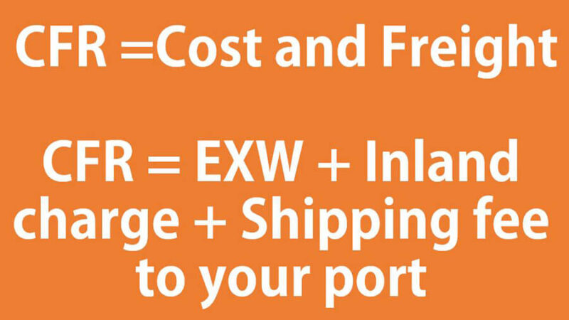 3. CFR (Cost and Freight): If the supplier quotes for CFR price, they will deliver goods to China port for export. They would also arrange the Ocean freight to the destination port (your country’s seaport).